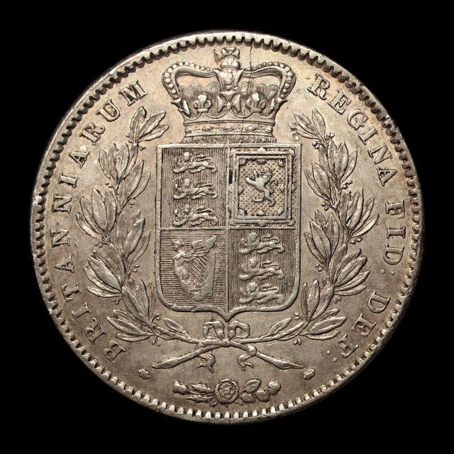 1844, yound head left, rev. crowned shield in wreath, cinquefoil stops, (S.3882, ESC.2562)