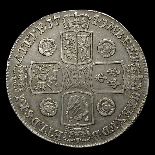 Young laureate and draped bust, 1741, D. QVARTO to edge, roses in angles on reverse (S.3687, ESC.123)