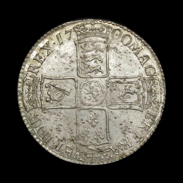 First draped bust, 1700, DVODECIMO to edge, reverse with large shields (S.3494)
