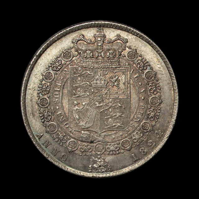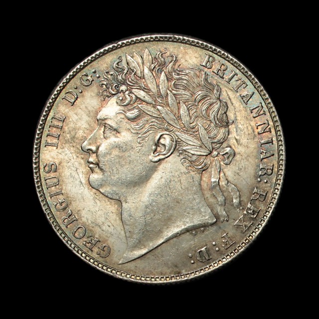 Laur. head, rev. crowned shield in garter, 1823, (S.3808, ESC.636)