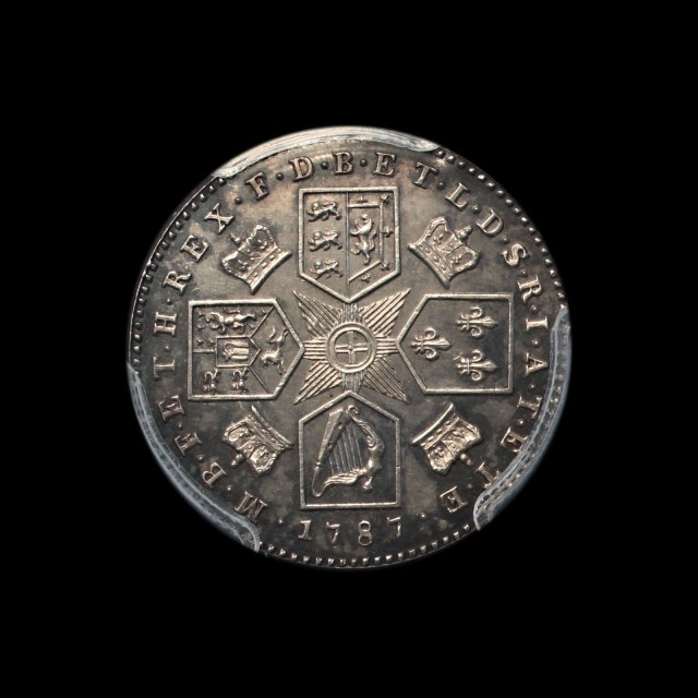 Laureate, draped and cuirassed bust right, rev. en médaille, crowned cruciform shields, edge plain, (cf. S.3748, ESC 2212). In PCGS holder graded PR63