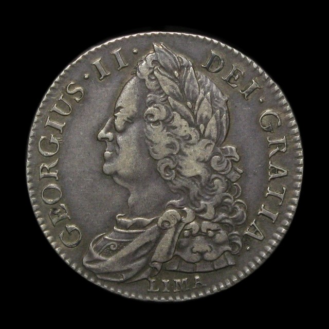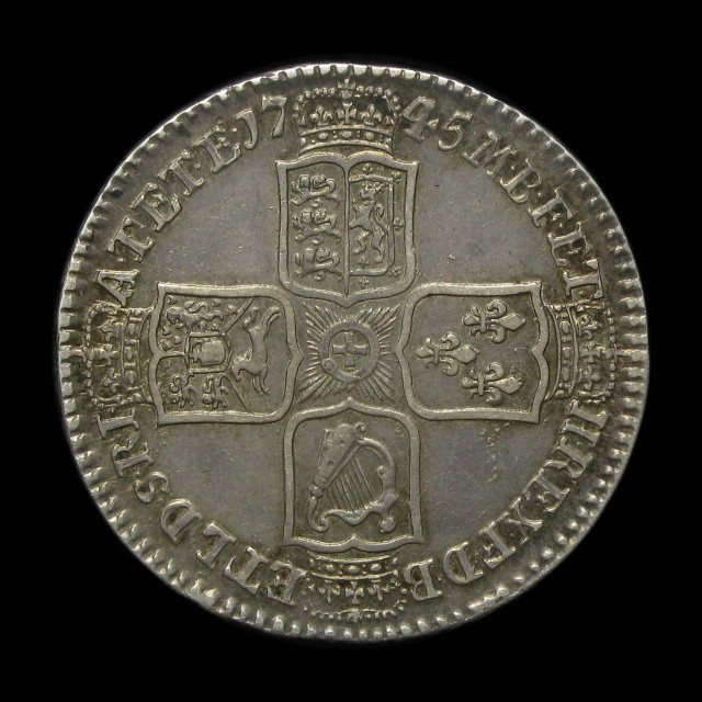 Old bust, 1745, D.NONO to edge, LIMA below bust, GEORGIUS, plain angles rev. (S.3695, ESC.605))