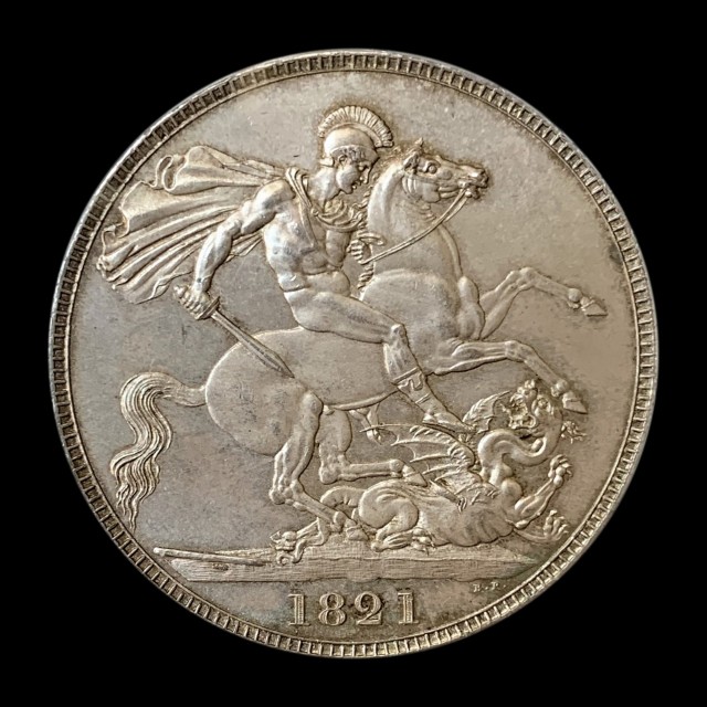 1821, laureate head, rev. inverted WWP under lance, edge SECUNDO, (S.3805, ESC.246A)