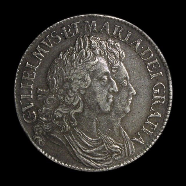 Conjoined busts, 1691 I/E in GVLIELMVS, edge TERTIO (S.3433, ESC.82)