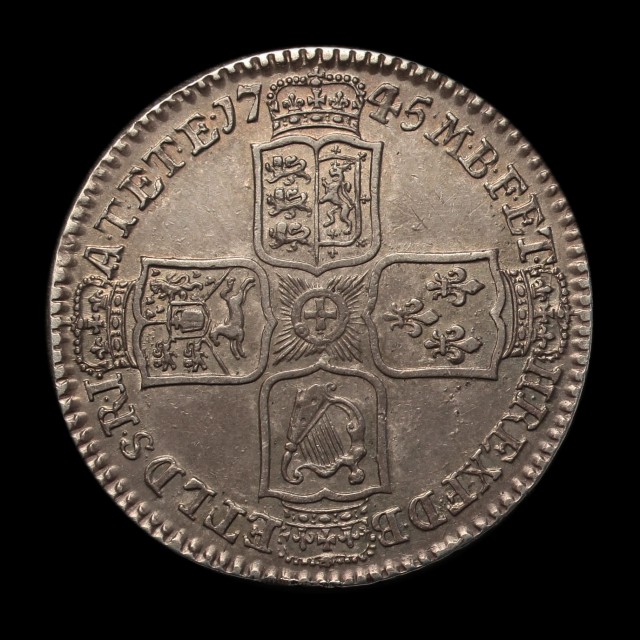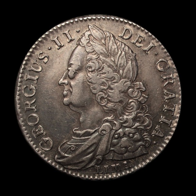 1745, old laur. head left, LIMA below, rev. crowned cruciform sheilds, angles plain, edge D. NONO (S.3695, ESC.1687)