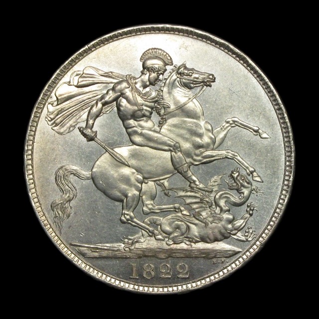 Laureate head, reverse St. George, 1822, edge TERTIO (S.3805)