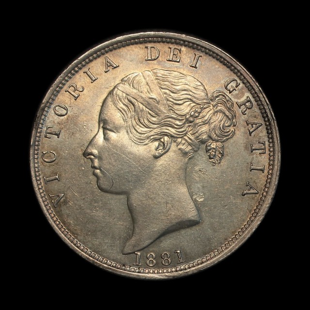 1881, young head left,date below, rev. crowned shield in wreath, (S.3889, ESC.2758)