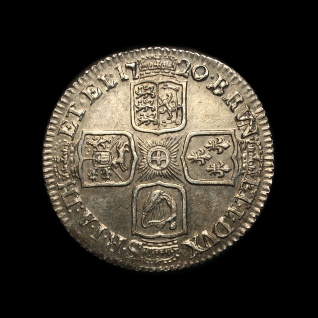 1720, first laureate bust right, rev. crowned cruciform shields, angles plain, (S.3646, ESC.1572)