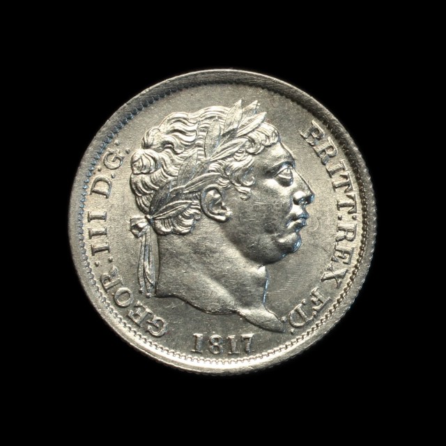 1817, laureate head right, date below, rev. crowned shield in garter, 'RRITT' flaw (S.3790, ESC.2144)