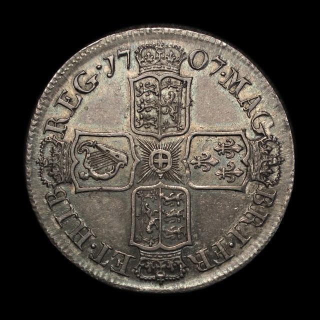 Draped bust left, E below, rev. crowned cruciform shields, angles plain, edge SEXTO, (S.3605, ESC.1379). Most attractively toned, probably softly struck on the obverse, a pleasing example, nearly extremely fine