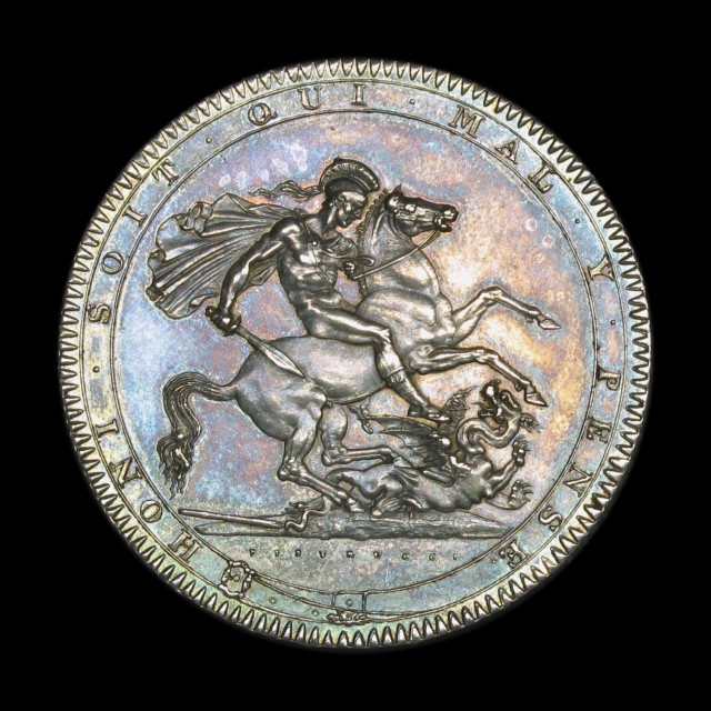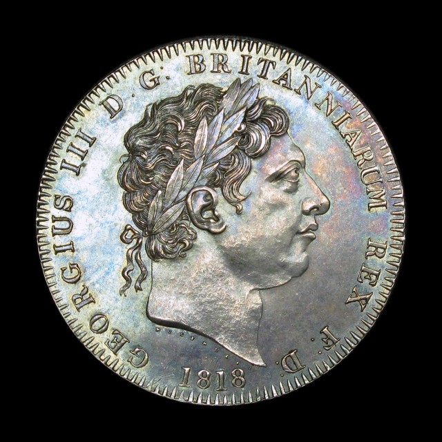Laureate head, reverse St. George, 1818 LVIII (S.3787, ESC.211)