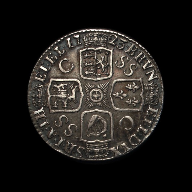 1723, first laureate bust right, rev. crowned cruciform shields, SSC in angles, (S.3647, ESC.1586)
