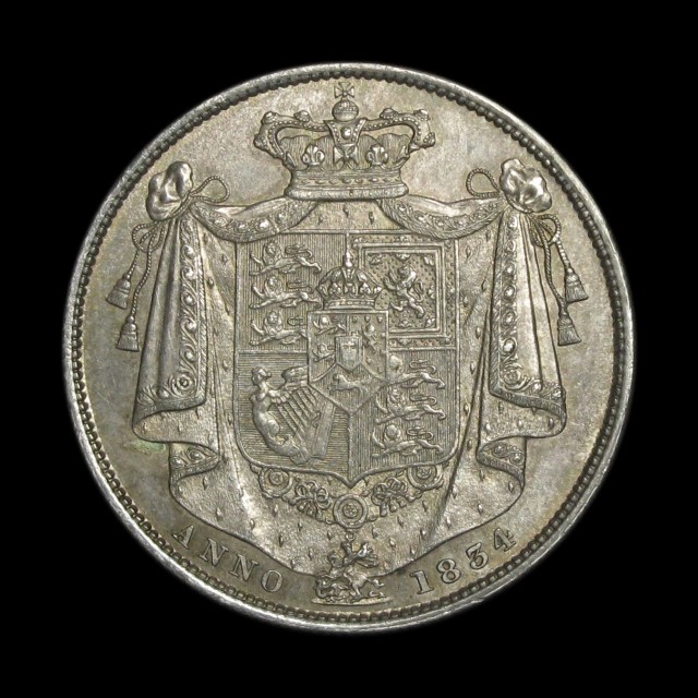 Bare head, WW in block, 1834. rev. shield on mantle (S.3834A, ESC.660)