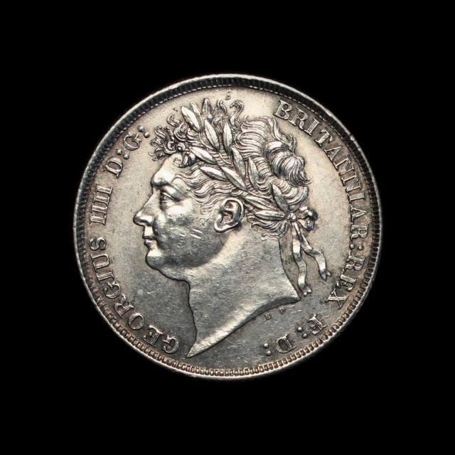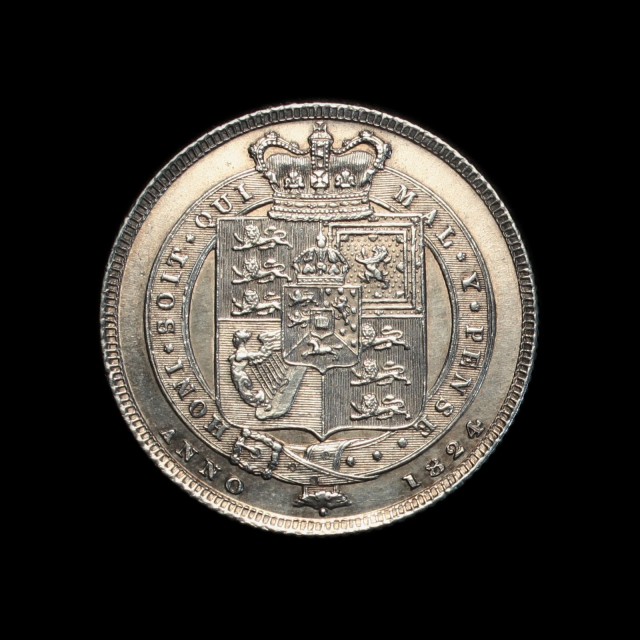1824, first laureate head left, rev. crowned shield in garter, (S.3811)