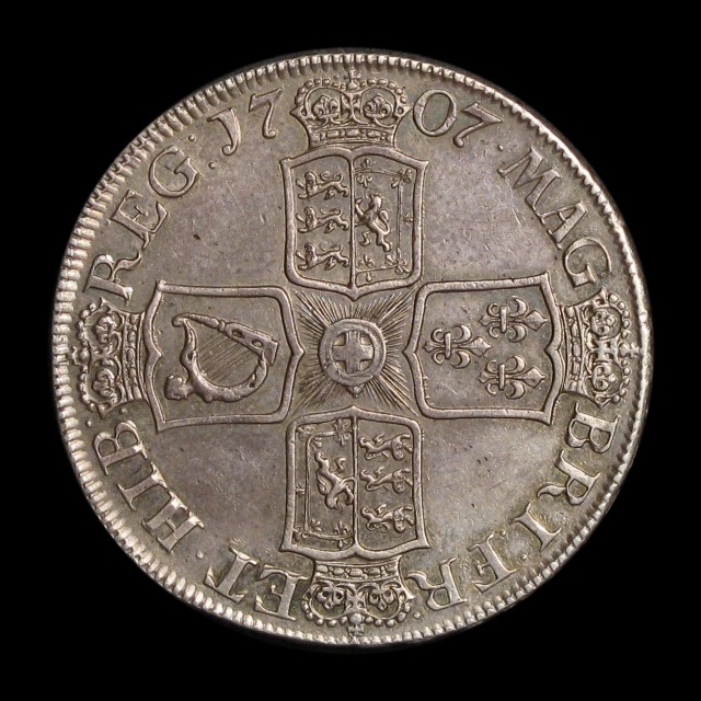Second draped bust, angles plain to reverse, 1707, edge SEPTIMO (S.3601, ESC.104)
