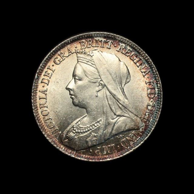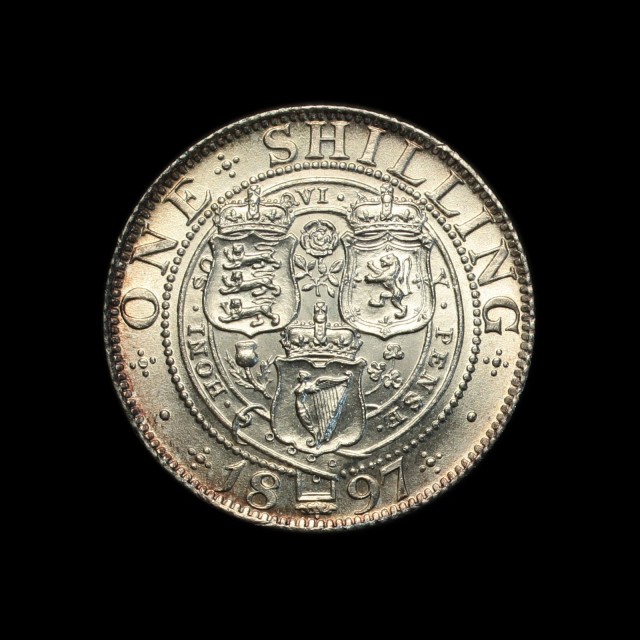 1897, old bust left, rev. crowned shields in garter, date below, (S.3940, ESC.3162)