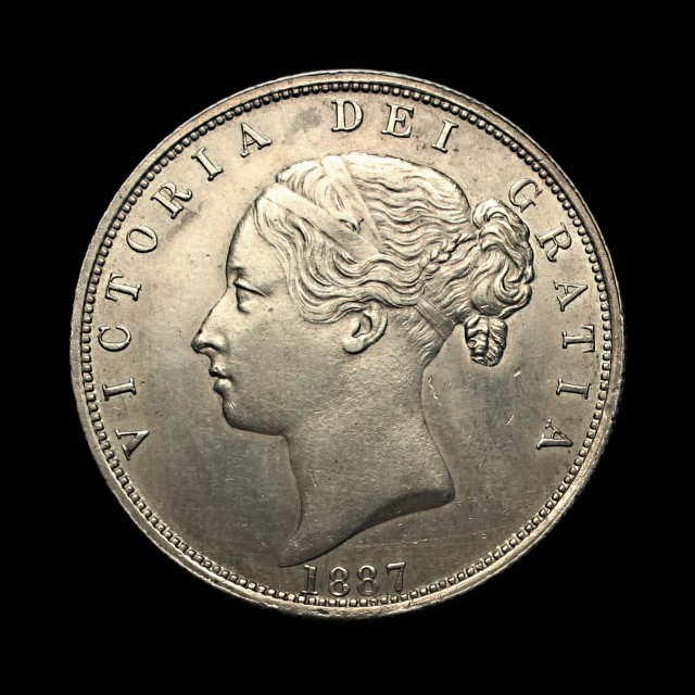 1887, young head left, date below, rev. crowned shield in wreath, (S.3889, ESC.2769)
