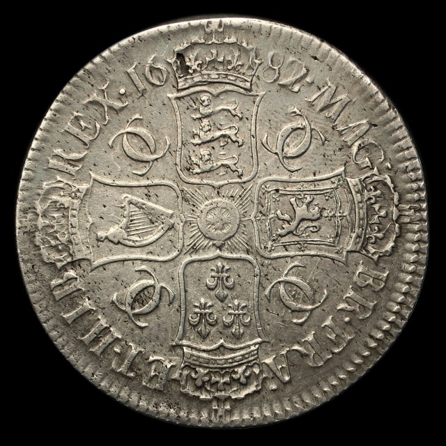 1682/1 fourth laureate bust right, rev. crowned cruciform shields, interlinked C's in angles, edge T. QVARTO, (S.3359, ESC.417)