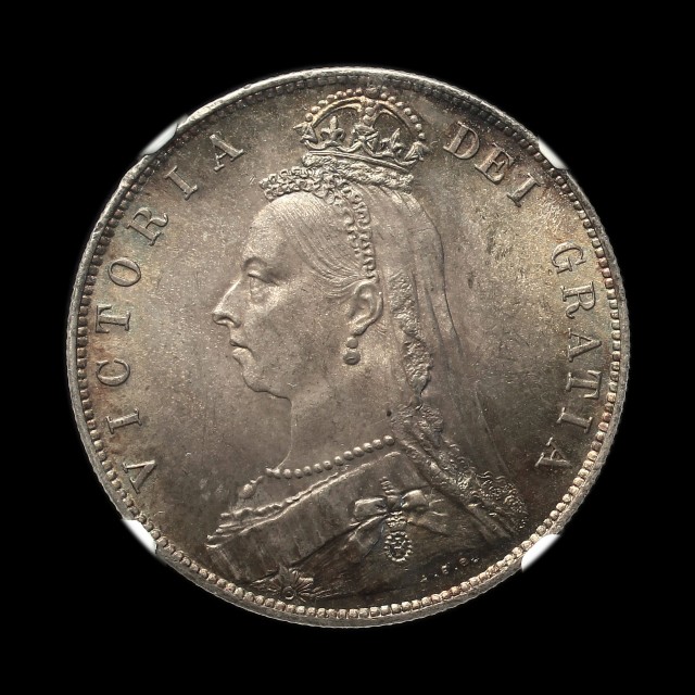 1891, jubilee bust left, rev. crowned shield in garter, date below, (SCBC 3924, ESC 2776)