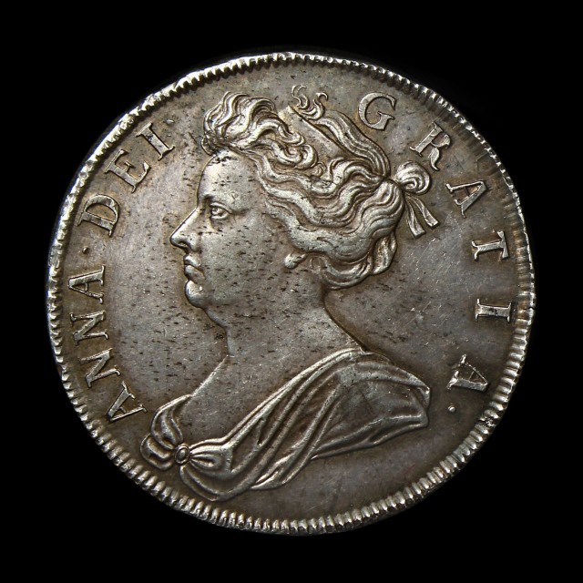 Pre-union, draped bust, roses and plumes in angles, 1706, edge QVINTO, (S.3582, ESC.573)