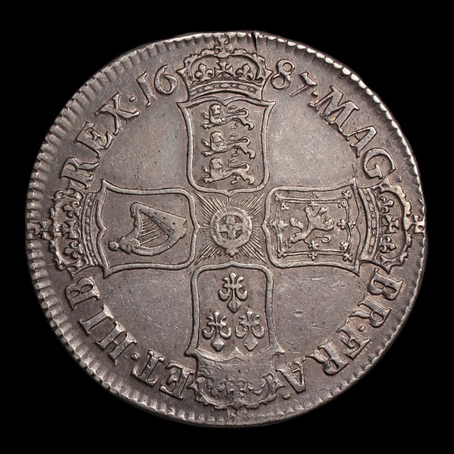 Second bust, 1687, edge TERTIO (S.3407, ESC.78)