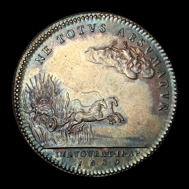 Conjoined busts, rev. Jove hurls thunder at Phaeton falling from his chariot, (MI 662/25). About as struck with choice surfaces, a lovely example.