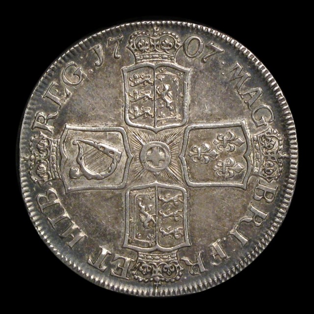 Second draped bust, angles plain to reverse, 1707, edge SEPTIMO (S.3601, ESC.104)