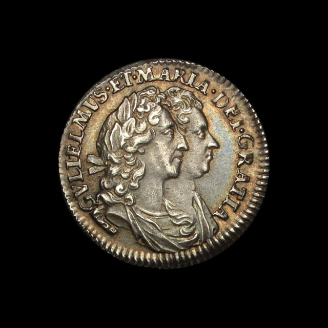 Conjoined busts, 1693, rev. WM monogram in angles, (S.3438, ESC.869)