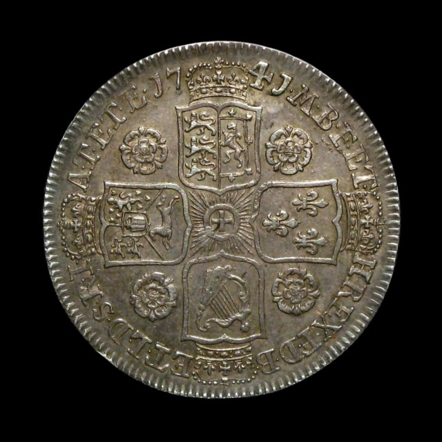 Young laureate and draped bust, roses in angles, 1741, edge D.QVARTO (S.3693, ESC.601)