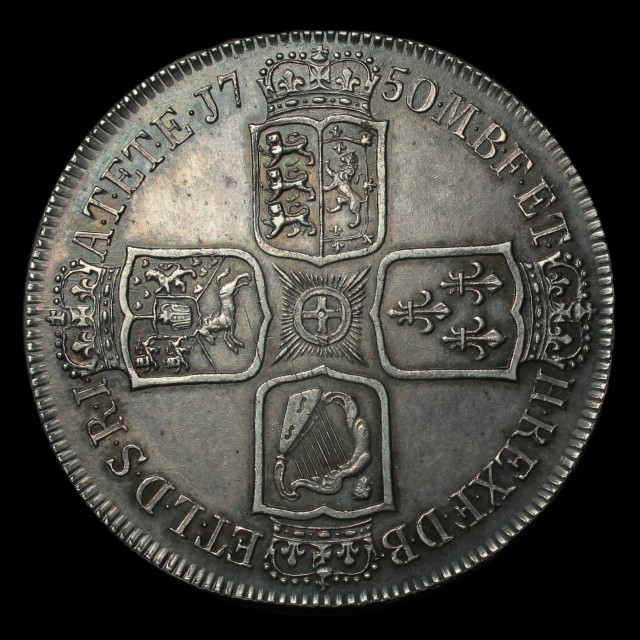 Old bust, 1750, rev. angles plain, edge V. QVARTO (S.3690)