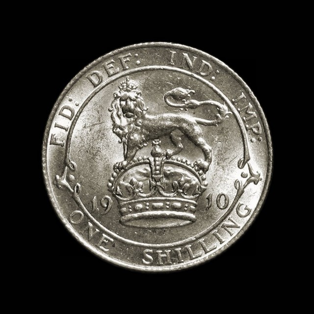 Bare head, 1910, reverse lion rampant on crown (S.3982)