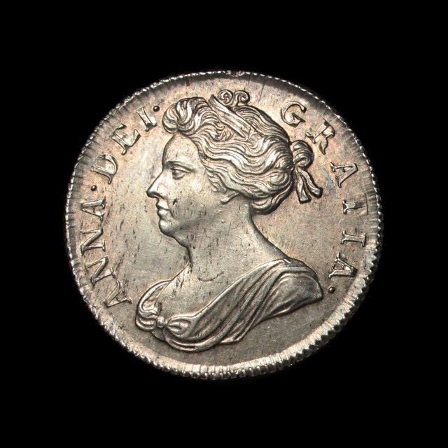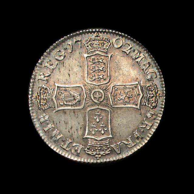First bust, 1702, rev. angles plain, (S.3583, ESC.1385)