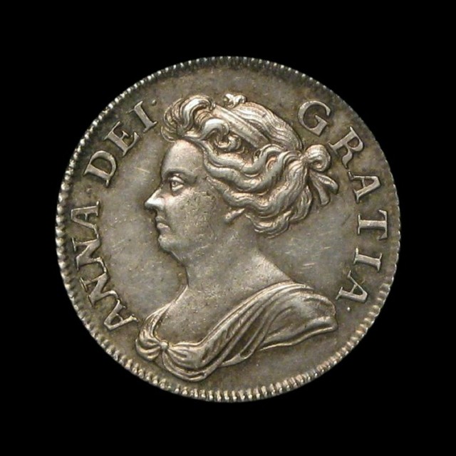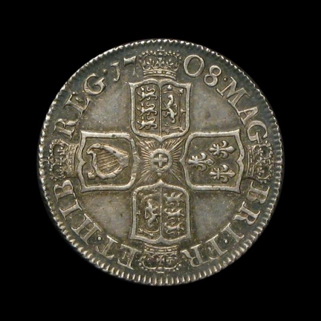 Third draped bust, 1708, angles plain to reverse (S.3610, ESC.1147)