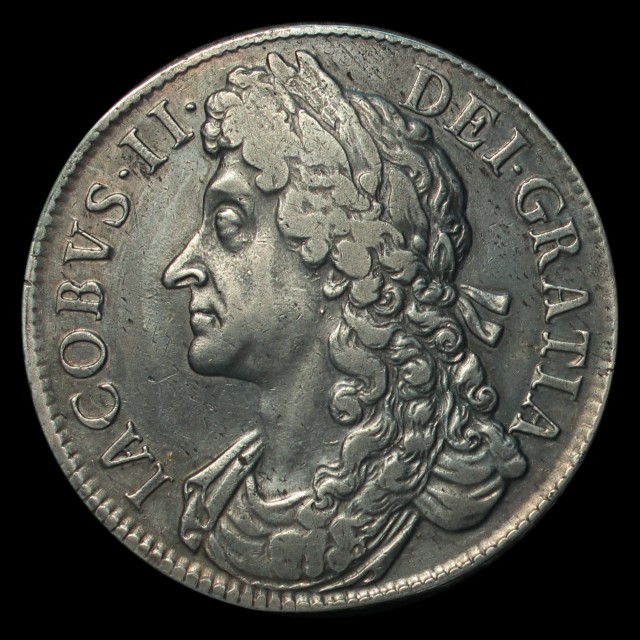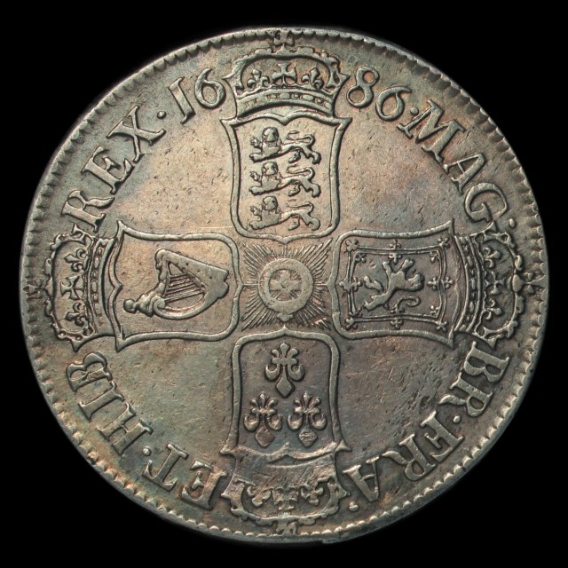 1686, first laureate bust l., rev. crowned cruciform shields, edge SECVNDO, (S.3406, ESC.740)