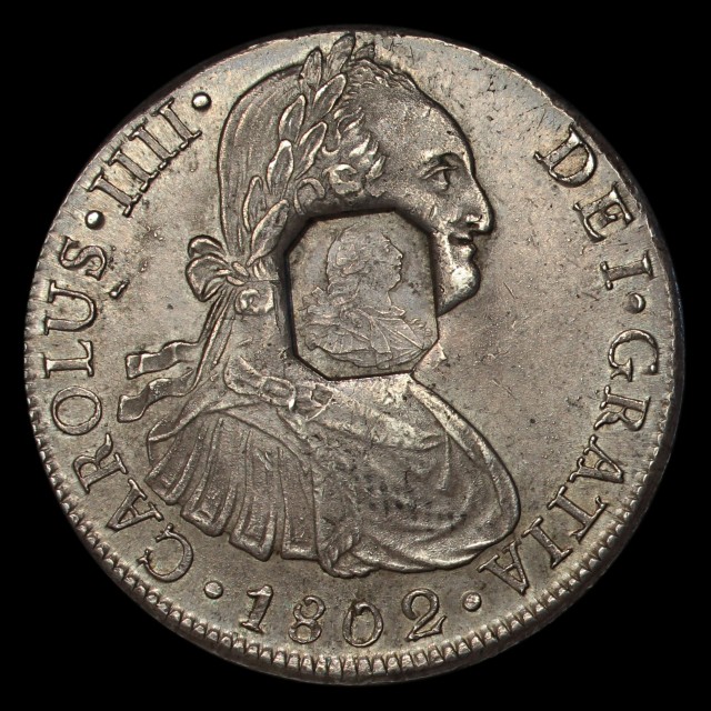 Struck on Peru, Lima mint 1802 8 reales, (S.3766). Good extremely fine and very rare so fine with the octagonal countermark