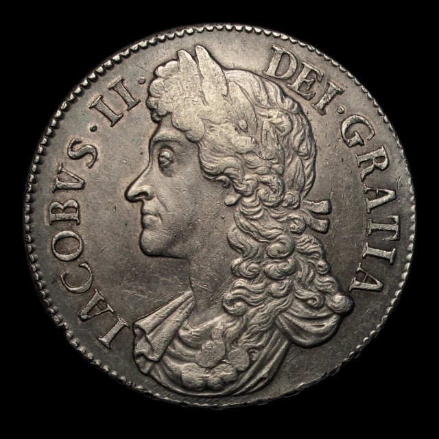 1687, second lareate bust left, rev. crowned cruciform shields, angles plain, edge TERTIO, (S.3407, ESC.743)