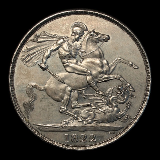 1822, laureate head left, rev. st. George slaying dragon, edge, TERIO, (S.3805, ESC.252)