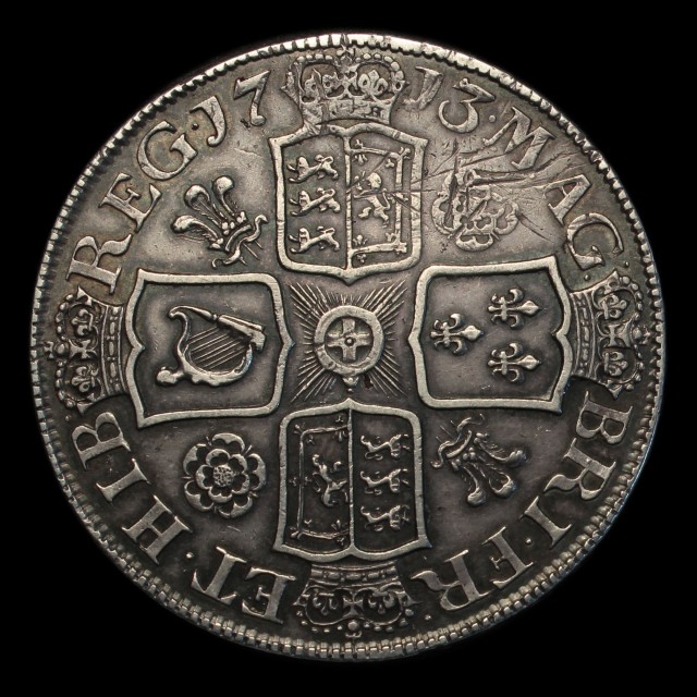 Post-Union, draped bust left, rev. crowned cruciform shields, roses and plumes in angles, (S.3603, ESC.1376). Metal flaw on neck and a few light adjustment marks particularly on reverse, otherwise nearly extremely fine