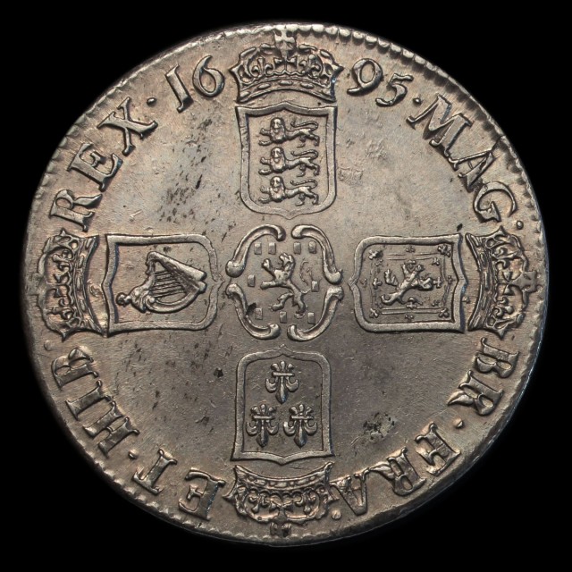 1695, first laureate bust right, rev. crowned cruciform shields, edge OCTAVO, (S.3470, ESC.991)