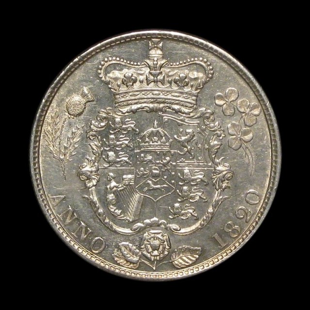 Laureate Head, reverse with crowned garnished shield, 1821 (S.3807, ESC.628)