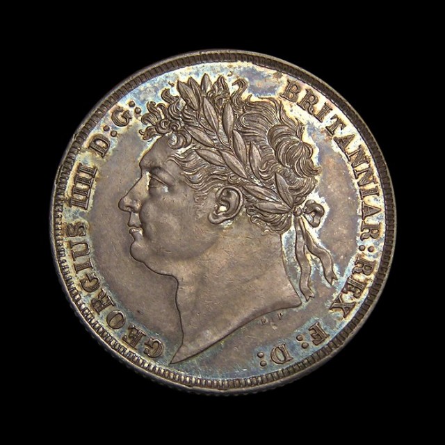Laureate Head, reverse with crowned shield in garter, 1825 (S.3811, ESC.1253)