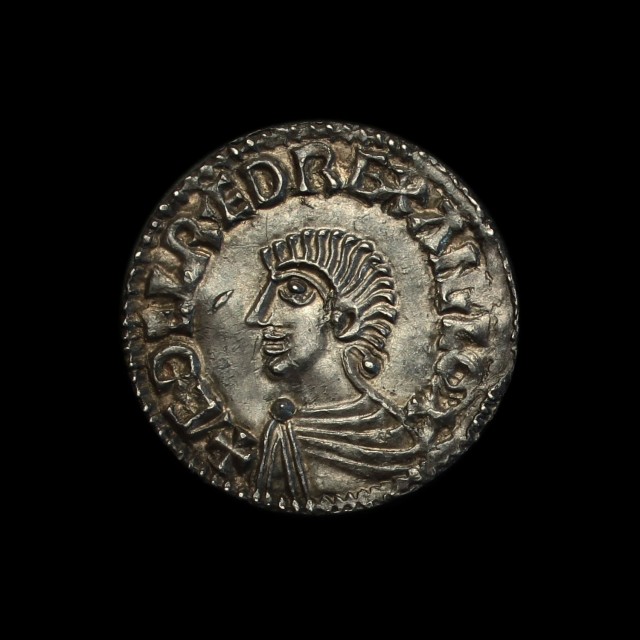 Canterbury mint, moneyer Edwold, +ÆÐELRÆD REX ANGLOX, rev. +EADPOLD MO CÆNT, 1.70g, (S.1151, N.774). Single peck mark in obverse field, old cabinet toned and extremely fine