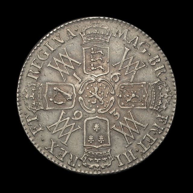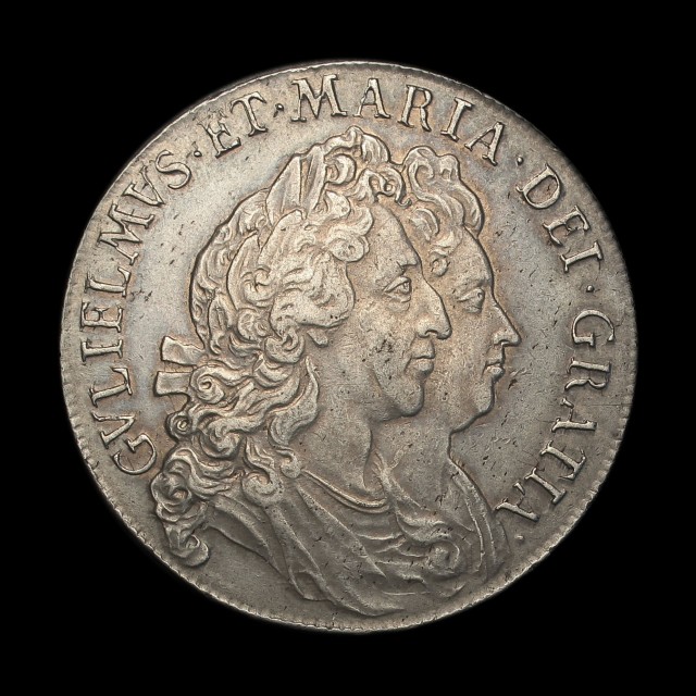 1693, second conjoined laureate busts right, rec. crowned cruciform shields, WM monograms in angles, edge QVINTO, (SCBC 3436, ESC 860)